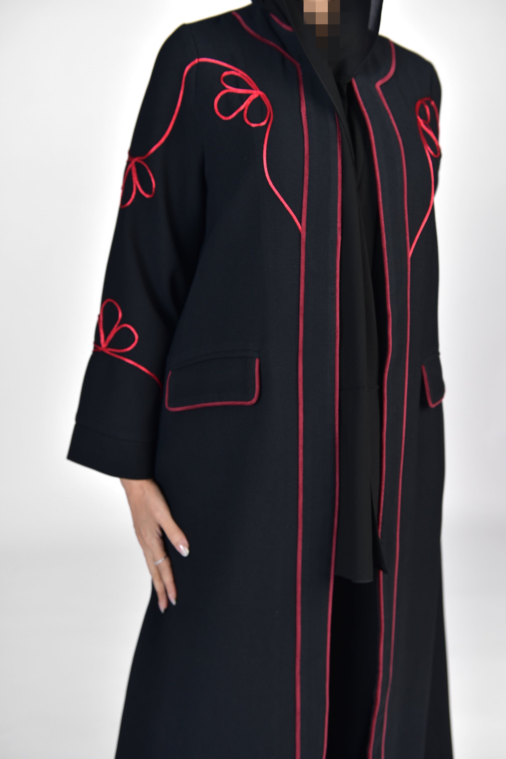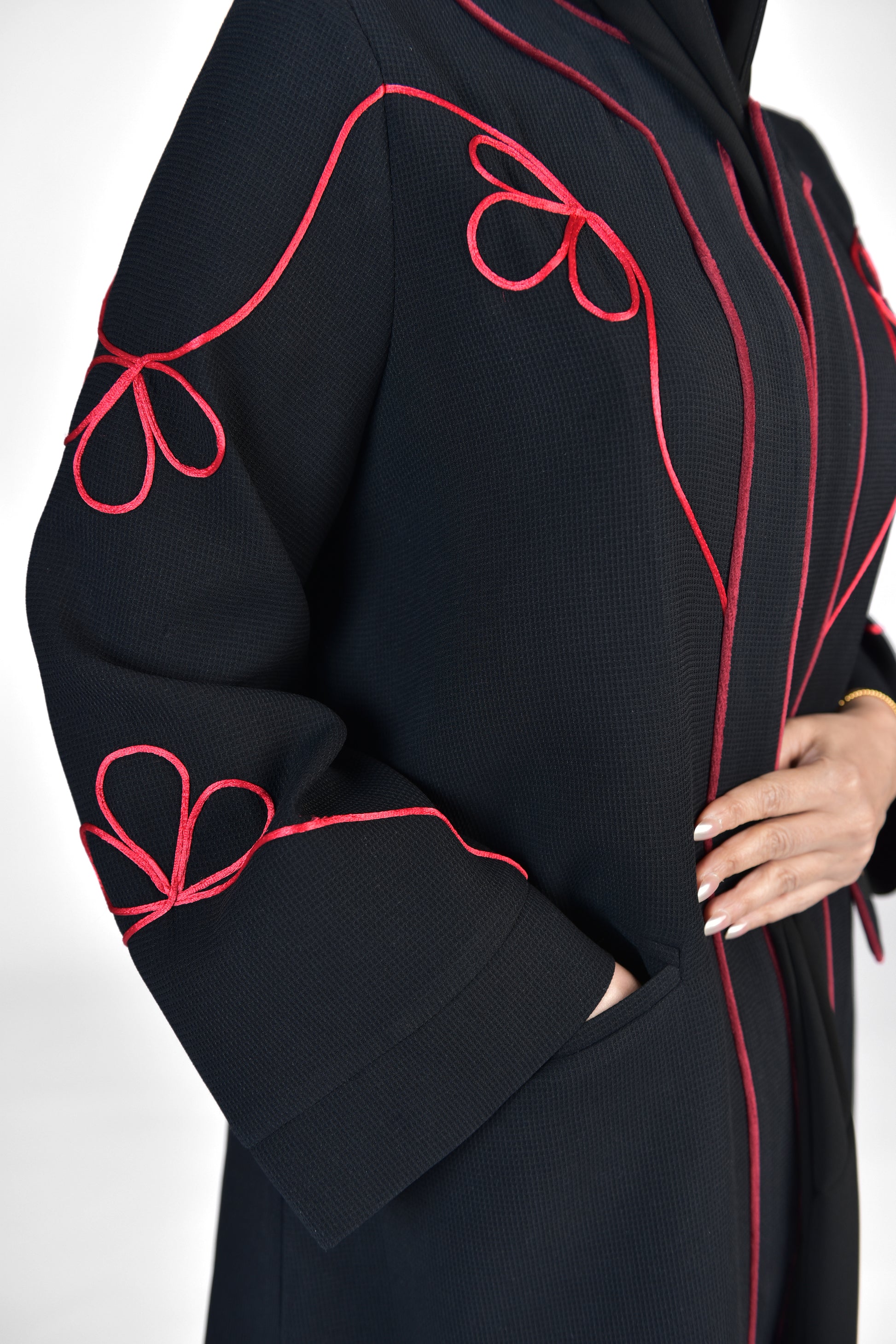 بليزر صيفي من الكريب الخفيف ومزين بخطوط متموجه باللون الاحمر ويتوفر منه الوان اخرى حسب الطلب